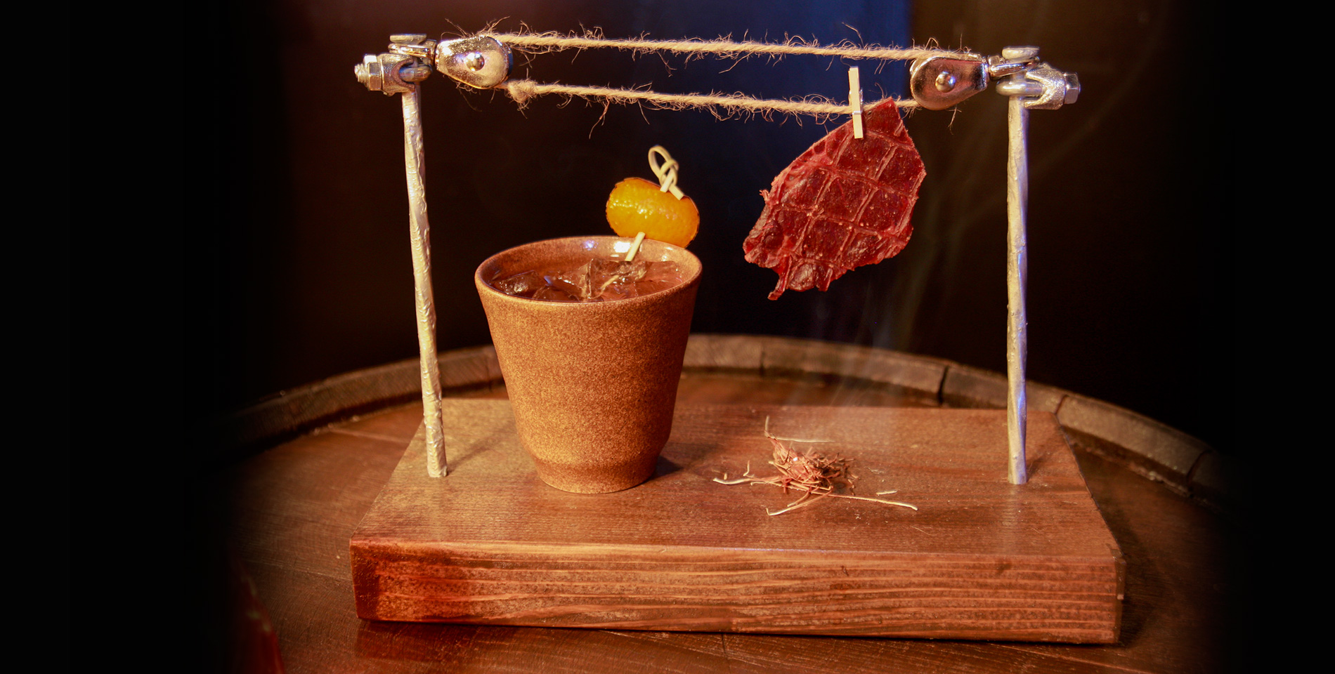When it comes to my drinks i’m pretty constant, you’ll see me drinking beer, wine, vodka tonic or scotch. Even when if we’re talking shooters I usually stick to Jägermeister or Chartreuse. For all other types of cocktails unless we are referring to a classic Old Fashioned or Manhattan I’m not very adventurous unless I know the bartender real well. That’s why going to a mixology bar can be fun but I often find myself regretting ordering certain drinks, I find they have a tendency to be too sweet. I went to the Lab Comptoir a Cocktails with a friend after movies, as we were planning a relax night I figured a few of cocktails from their mixologist wouldn’t kill me even if it was not my regular poison. We were lucky when we showed up as there was room at the bar for us to sit. This did change quite fast though and I strongly suggest giving them a call if you’re planning to visit them. The bar is not very big but as a warm feeling, if you get to sit at the bar you will also have a view at their very well stack bar. They also have a DJ but on my few visits there is not a specific style of music to the place. As I was offered the menu I browsed true it I picked something that didn’t seem to elaborated an Hendrix Cucumber and Chartreuse. OMG this stuff was pretty amazing and I got to say got me to put my guards down towards trying some drinks. As we got to know our bartender a little better she asked me what was my regular drink. I mentioned I liked Scotch so she went on suggesting drinks that had a Scotch base. My friend was also like a kid in toys store trying all kinds of different drinks, one was actually pretty decorative as it was a Jack Daniels drink served with beef jerky hung on a clothes line looking apparatus attached to the wood board it was served on. Since I don’t want to be judge I won’t confirm how many drinks were sampled during that evening but here a few pictures. Since that first visit I’ve been there 2 more times and the Nirvana and the Buffalo Earth are my favorite drinks. They also make and sell their own syrup and bitters. They have a fire show also at one point during the night that I actually witness twice out of the 3 times I’ve been there. If you’re looking for a different bar type experience I think you will have fun there.