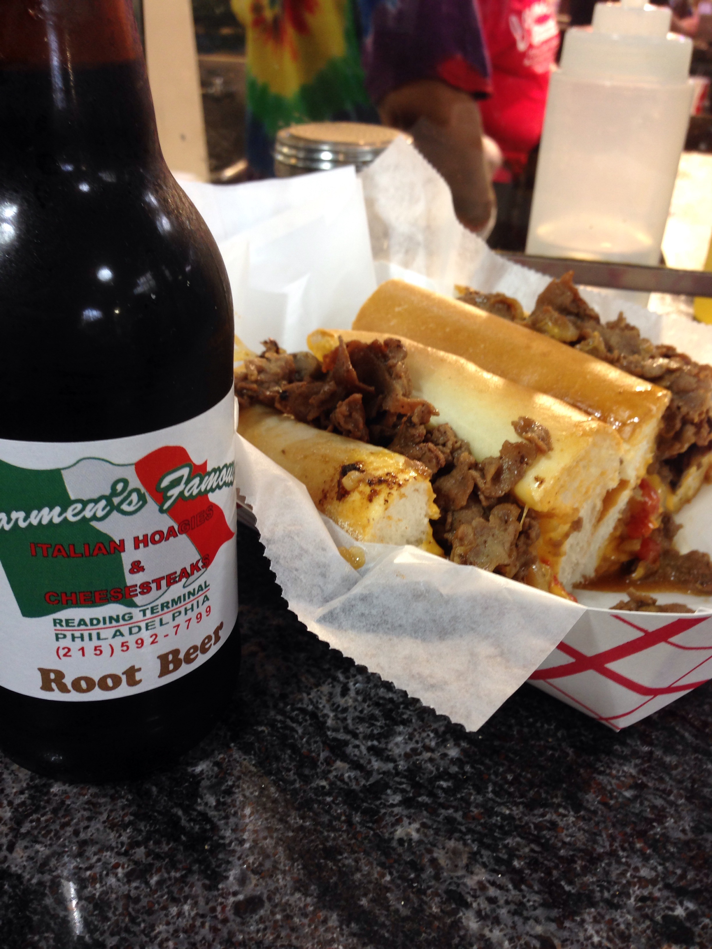 Who can come to Phily without having one of their world known Cheesesteak? I was in Reading Terminal Market looking for what looked like the best choice for Cheesesteak when I spotted this place. As I did the line up to get to the cash to order my sandwich I suspected I made the right choice when I saw next to the cashier a picture of President Obama ordering a cheesesteak. When you think of it, I doubt his publicist would have made the mistake to take him to the worst place in town. As I got my order, a classic Cheesesteak with one of Carmen’s Famous original root beer I got confirmation I had picked the right place. The food was simply excellent and after I was done all the staff, even the cook asked me if it was to my liking. For me this is always something I appreciate when I see the staff caring and proud of their work… hats off to this fine establishment.