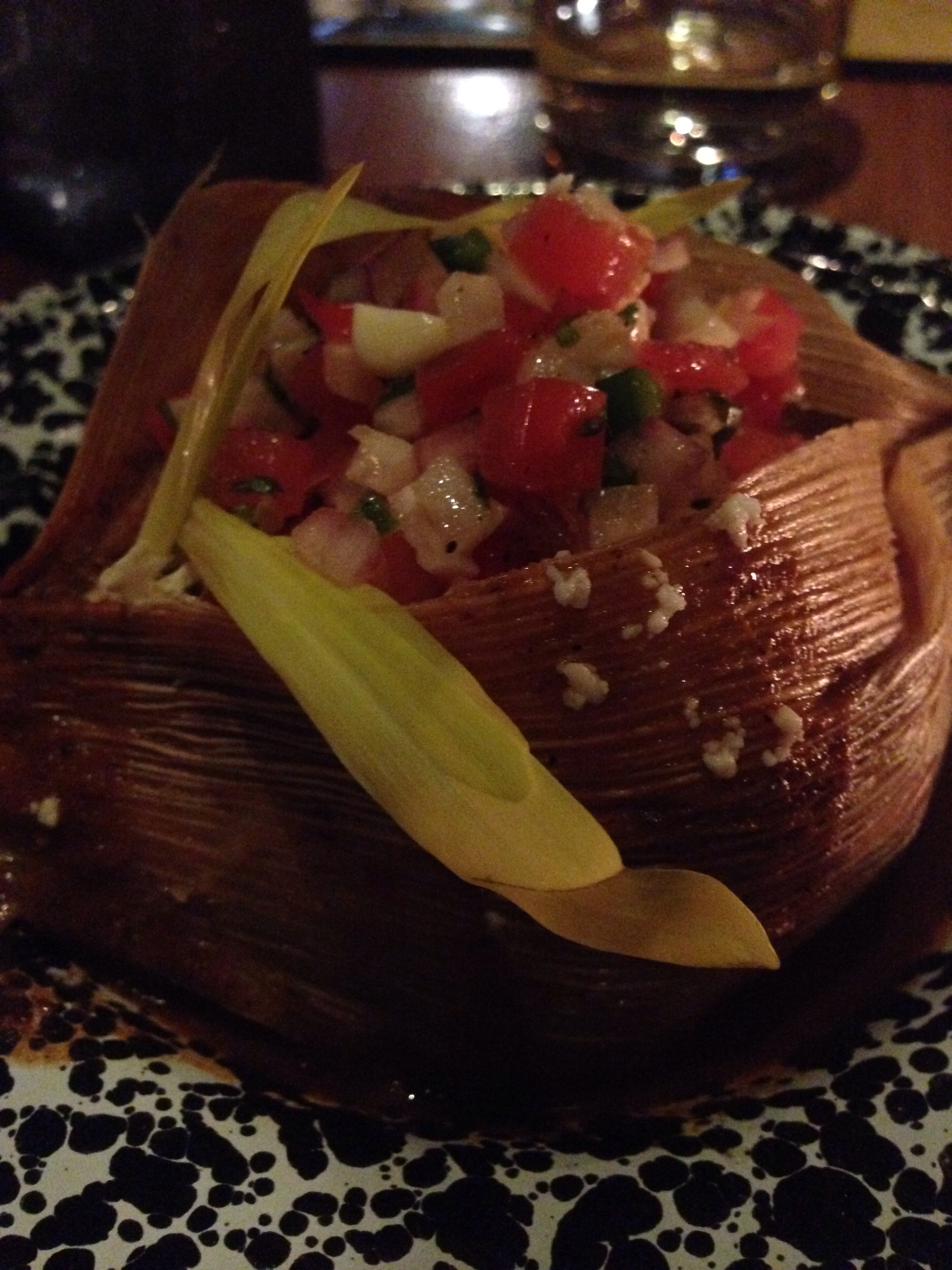 I found this nice Mexican place and was attracted by their menu that was far from the regular items you usually see on the menu. Ambiance is cozy with lots of tables and a long bar where you can eat at as well. I ordered the seared tuna tacos for appetizer and the duck tamales for main meal. The tamales was excellent with the masa mixed with duck fat and duck. I was pretty impressed by the quality and taste of the food as i’m often disapointed by the lack of inguniity of lots of Mexican restaurants.