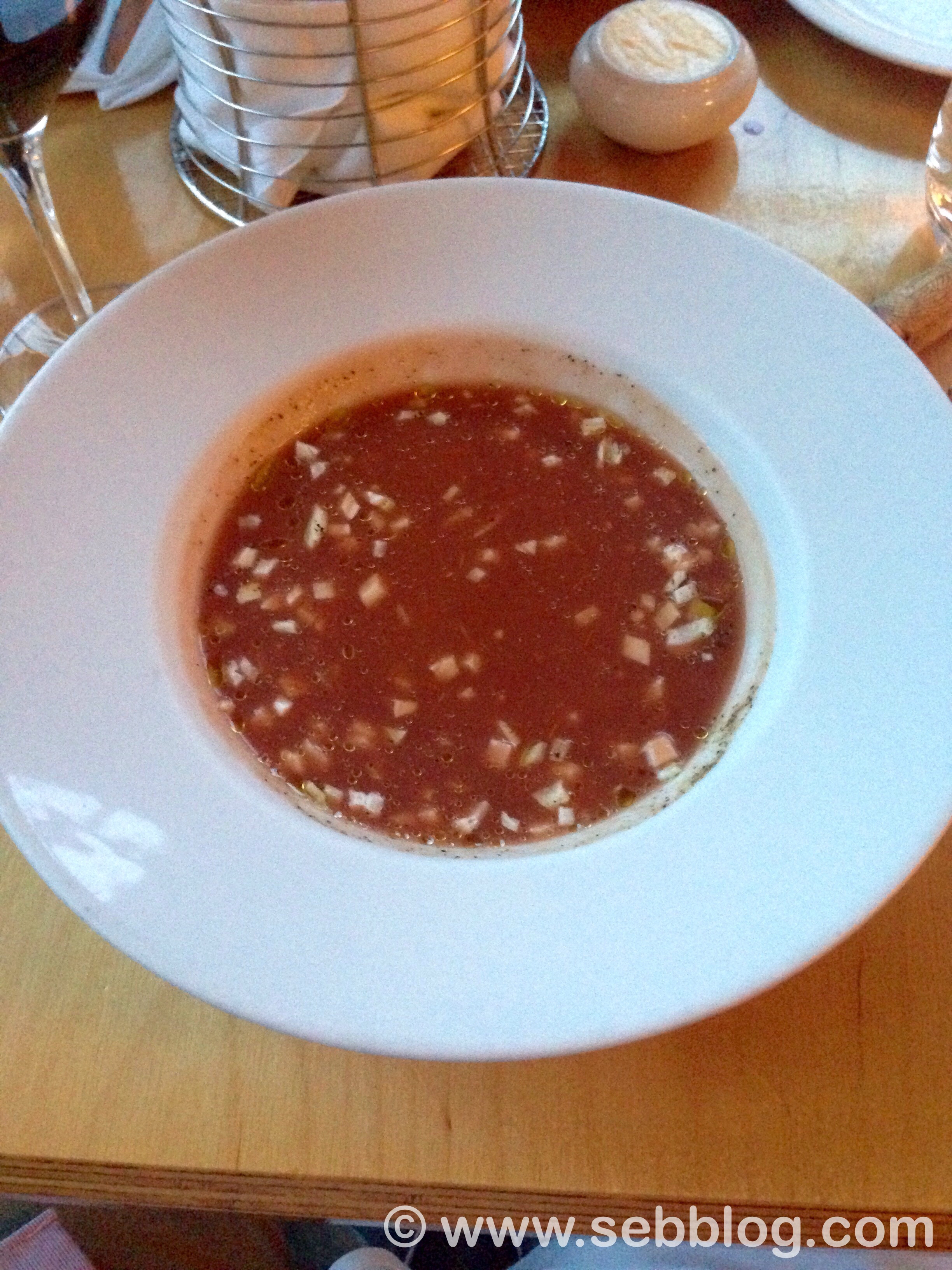 We both went for the Table d’Hote and after ordering our appetizers we had to ask for more time to make our choices as a lot of dishes were very tempting. I finally set my choice on the Bison Tataki and the Porcelet Gaspor while my friend took the Foie Gras Torchon and the Duck Magret. I had the soup which was a Gazpacho and my friend the salad. The Tataki was good but the portion was very small, in the end it worked out fine as we shared the appetizers and Foie Gras is pretty filling. The Foie Gras was also very good melt in your mouth soft and it didn’t feel as heavy as it can sometimes do. The Porcelet was just amazing, the tenderness of the meat, the taste and the seasoning confirmed that I had made the right choice. The duck Magret was also very tender and again the taste and seasoning were perfect, you could just taste the high quality of their ingredients. I had the Creme Brule for desert and it’s one of the few deserts I really enjoy.