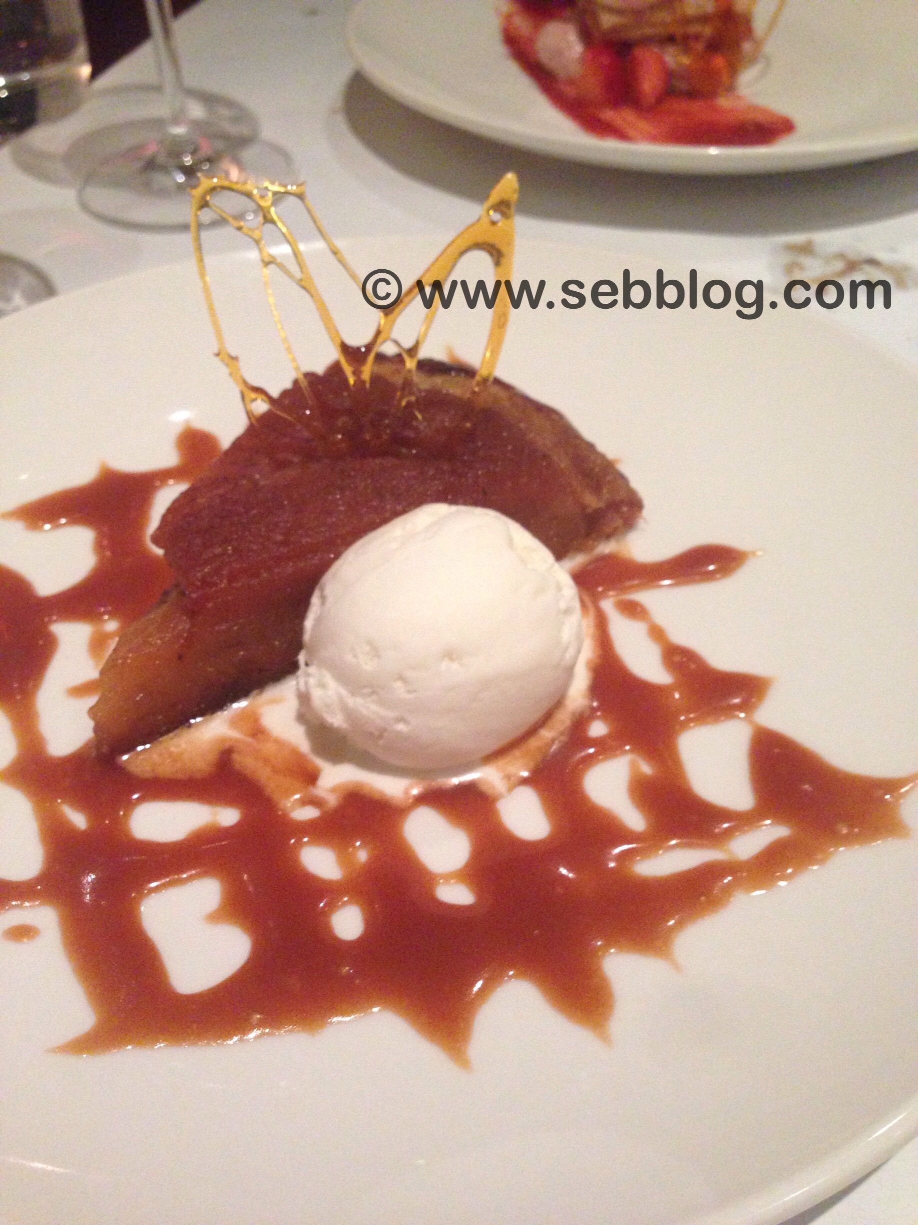 As for the food it was delicious. My friend had the Foie Gras Poelé and was kind enough to let me try it. The texture and taste were perfect. It just melted in your mouth but was not drowned in oil or butter so you could taste the foie gras. I had the snail stuffed calamari with fresh cream, that was extremely tasty and honestly a combination I would have never thought of. For our main course I had the carré d`agneau au deux moutarde and my friend the fricassé de lapin Stanstead with lardon and braised cabbage. The carré d`agneau was so tender and cooked to perfection with the sauce not overpowering the taste of the veal. I also had a chance to taste the rabbit and it was also excellent. I`m usually not a fan of rabbit because it`s a lot of work to eat but cooked this way it was a delight. The cabbage that accompanied it was also tasty and match perfectly with the rest of the dish. We finished off the meal with an apple caramel pie and strawberry mille feuilles, again these were excellent.