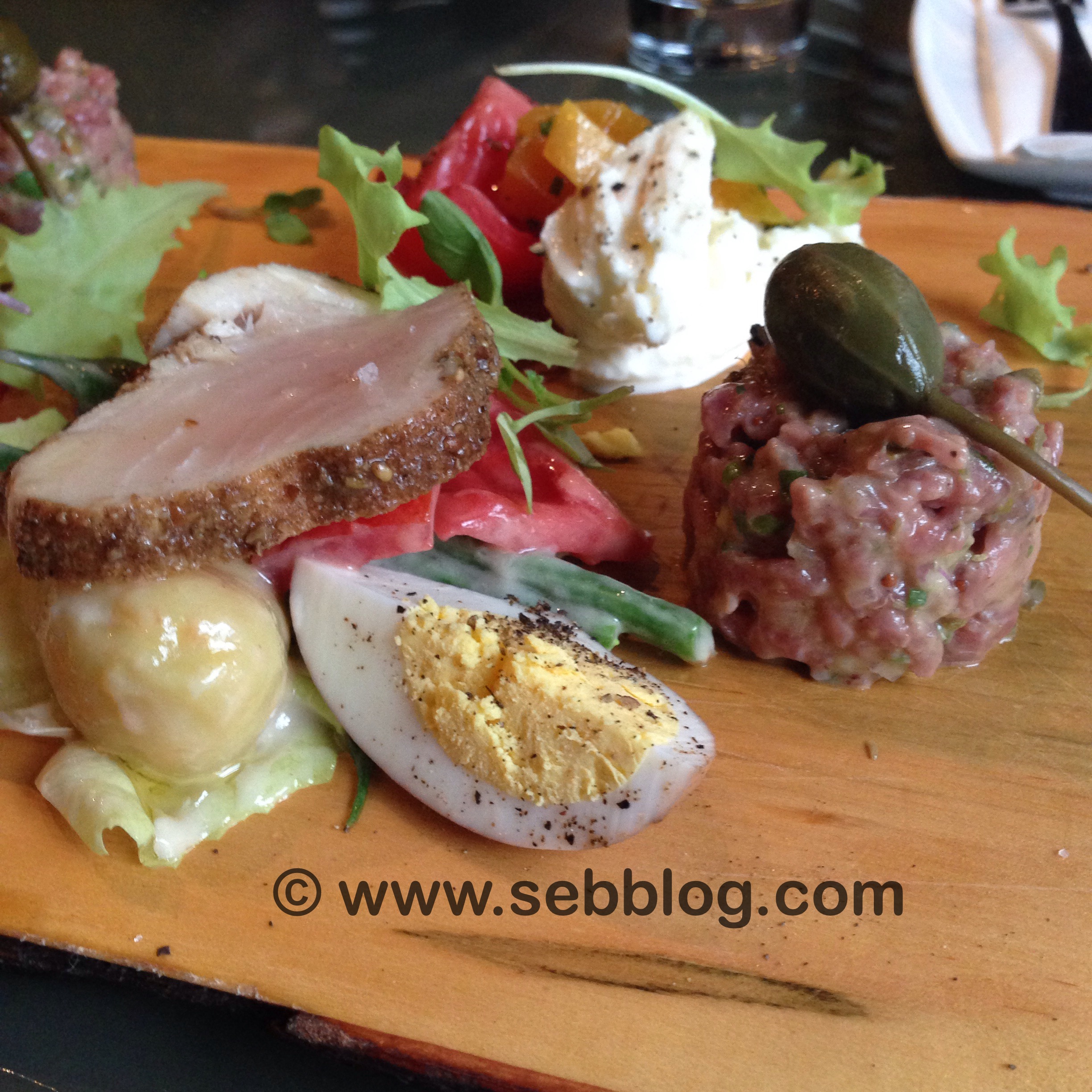 The tartar tasted good, not too much spices so you can still taste the meat. I have to say that it was chopped a little big for my taste, but that’s more a question of choice. The mozzarella had an interesting texture and taste, I will always have a problem forgetting the ones I had in Italy and get very picky, but since the restaurant uses local products I enjoyed it . I’m a fan of tuna so a salad Nicoise with Albacore tuna would have been one of my choices, I liked it as the tuna was seared just as I like it but I should have taken the dressing on the side. After tasting this menu we decided to also try the Lobster Roll, half a lobster with mayonnaise and shallots. There was not too much mayo so you could really taste the lobster. My friend had hers with mayo on the side and a little lime and the staff was accommodating to make it happen. Presentation on all the food and drinks was excellent and the ambiance on a Thursday night with a live DJ was also fun.