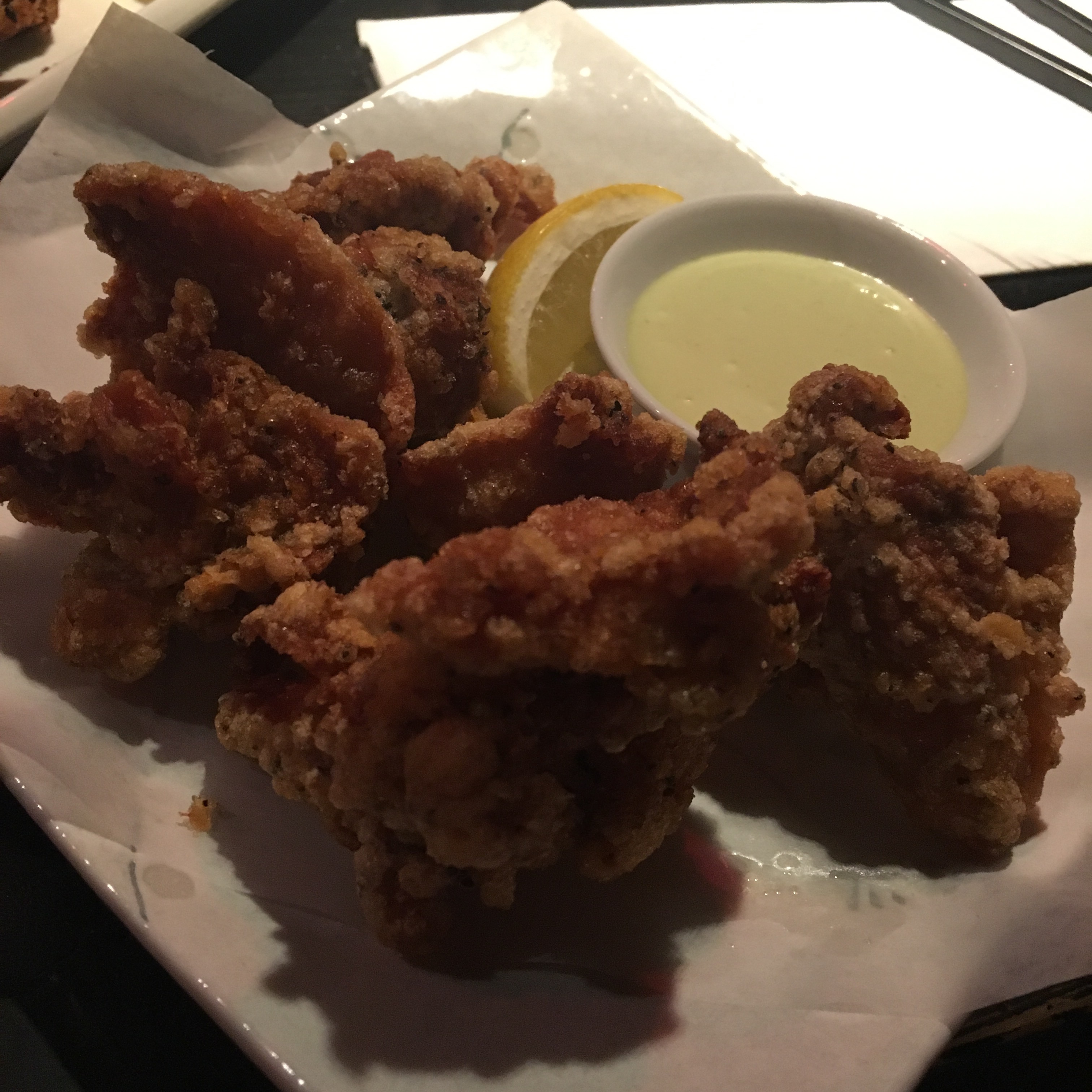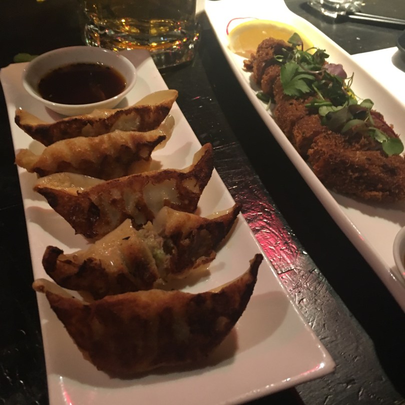 I usually enjoy sharing dishes but people were very territorial with their food that night so we all ordered our own dishes. I ordered some asparagus with bacon, I mean let’s be realistic who can say no to bacon? I also had some pork dumplings that were very good and the Takoyaki which are octopus breaded balls were also very good. I also had the fried chicken that is always good there.