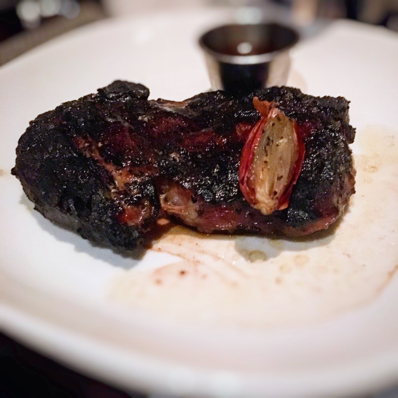 We started with some appetizers, fried green tomatoes and goat cheese risotto fritters. If you’ve never had fried green tomatoes you have to have some, it’s a southern dish and it’s very good. Thefritters were also pretty good, but they slightly tasted of goat cheese the risotto taste was more prohiminent. I then had the Ribeye as my main, medium Chicago style. Some places call it Chicago some other Pittsburg but in case you don’t know what it is it’s your steak charred on the outside and cooked to your taste on the inside. If you like the charred taste this will be your new way of ordering steak.
