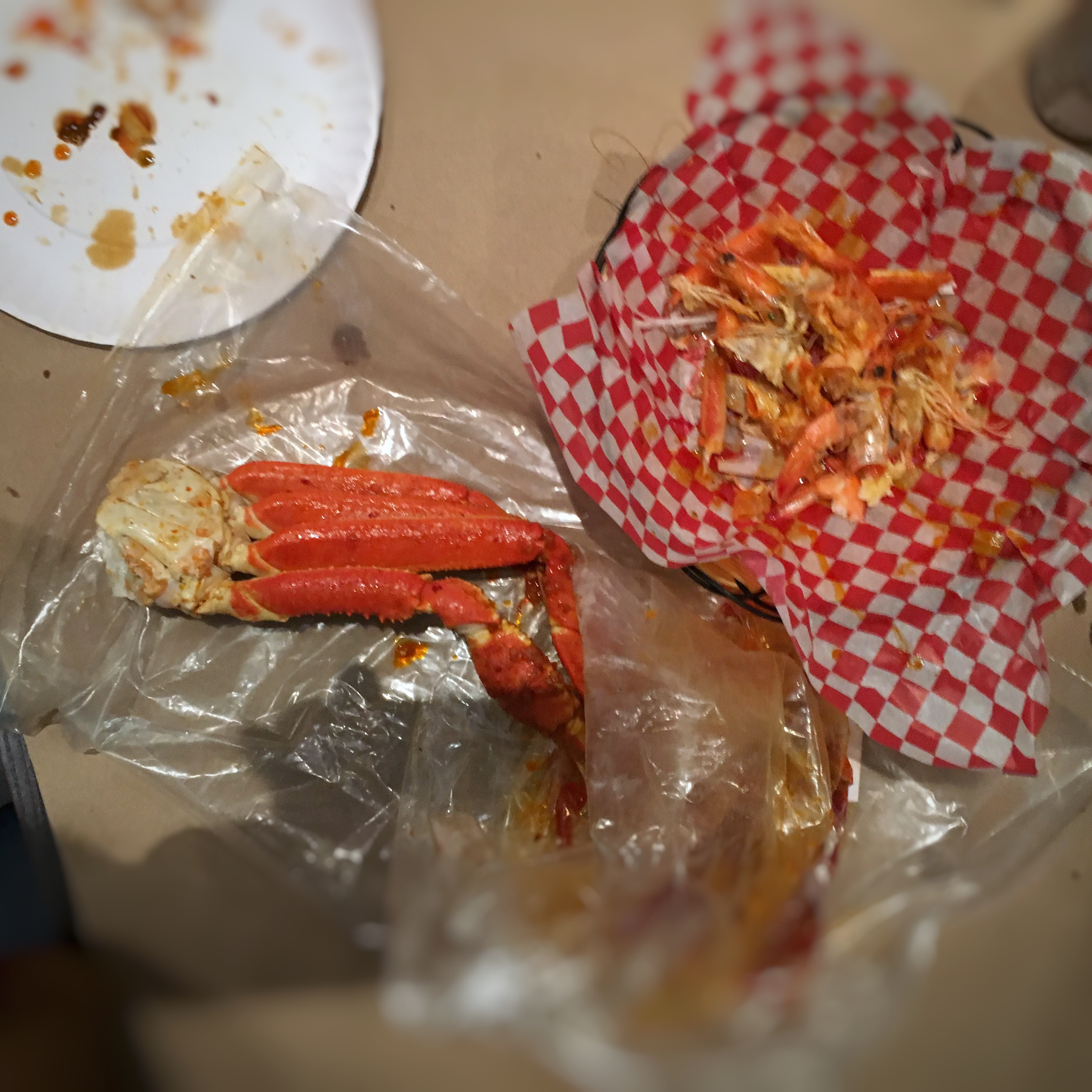 The choice of sauce and spice was perfect, I was spicy enough. It was actually easier to eat the food with the hands than it would have been with utensils. The clams were good and so were the crab legs. The crab legs gave me a little bit of a hard time when I got to the claw but I managed to get through it.