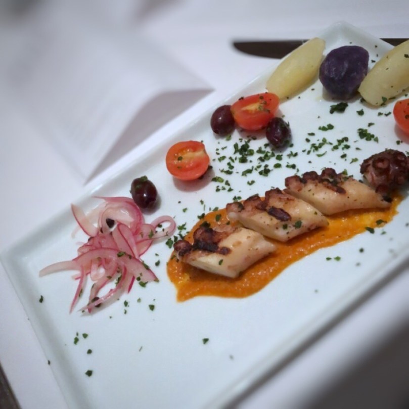After trying most of the delicious hors d’oeuvres and a few glasses of champagne, we were then escorted to the dining room to begin sit down dinner portion of the event. Each dish that was served was prepared exquisitely and went perfectly with their assigned brand of EVOO. The desert was my absolute favorite: Double chocolate ice cream, olive oil, fresh berries & biscotti. It was so good that: