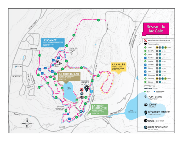 This is an easy hike to the top and there is a nice view to Lac Gale and another nice view point at the top. There is only about 1/2 km that it is a bit steep only.