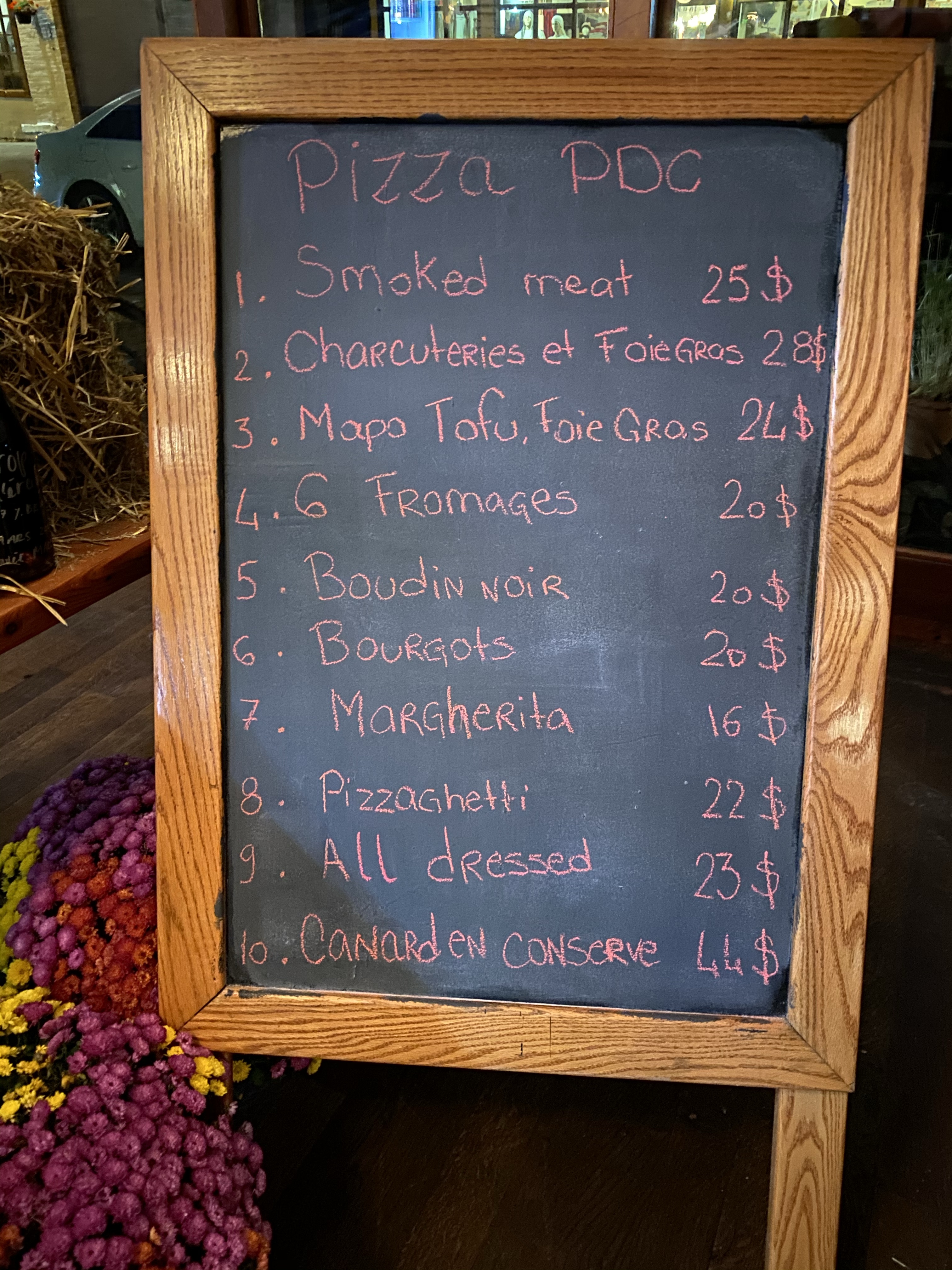 Voici le lien vers leur site web et le menu complet pour les plats à emporter : Au Pied de Cochon