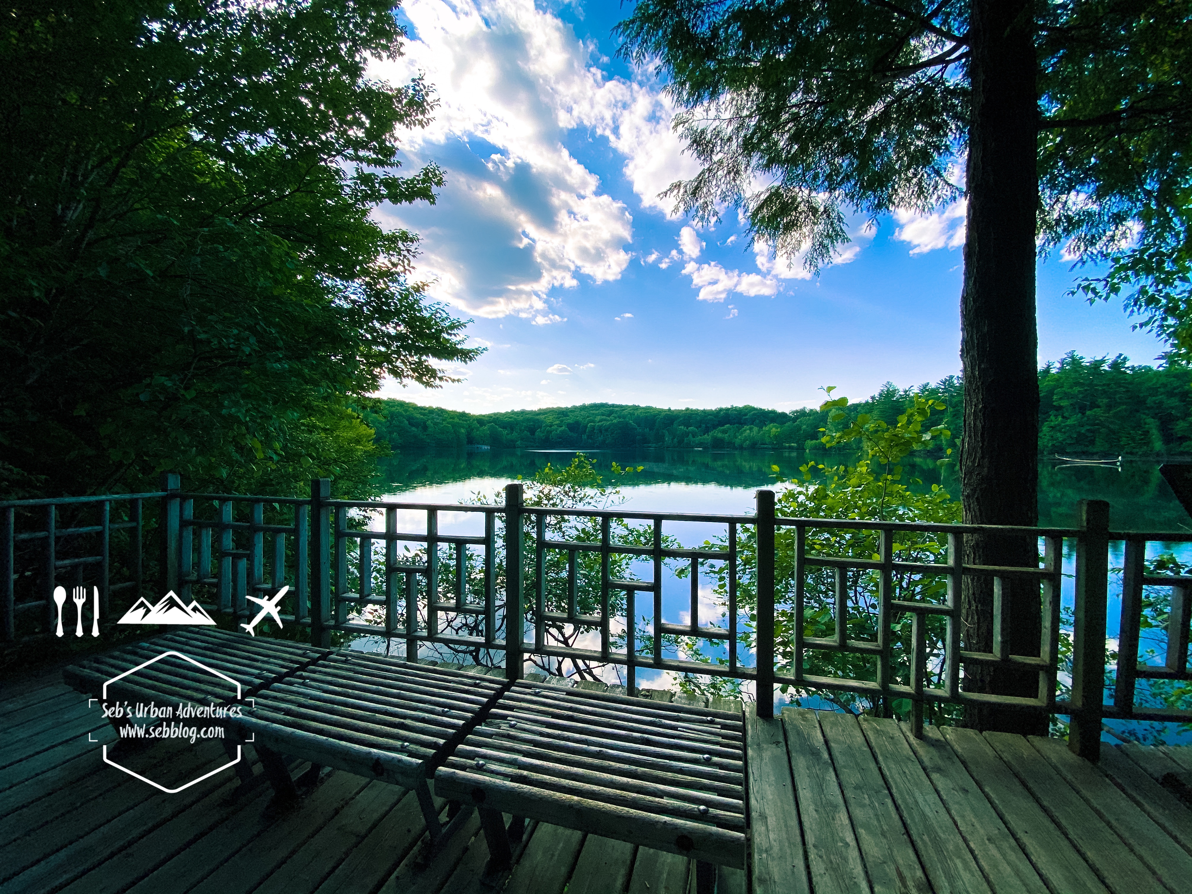 This is actually a 9.5 km hike with 170m of elevation gain located in the Mont Saint Bruno National Park. The drive from Montreal is about an 30 minutes.