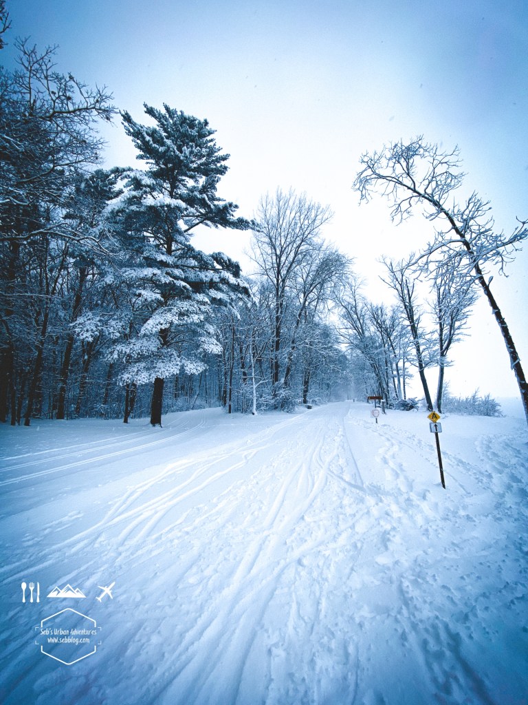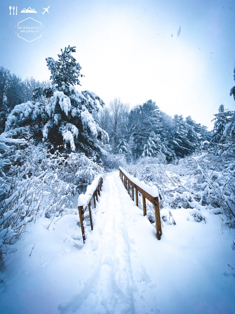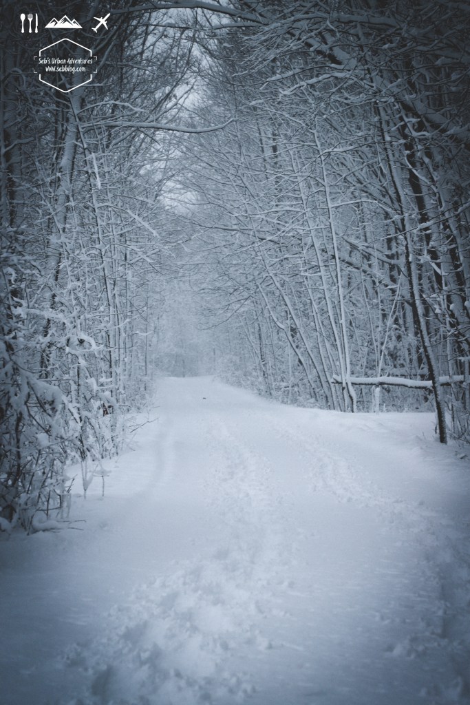 The view of the frozen lake from the beach are pretty nice and once you’re in the woods you go through a few nice wooden area on the shores of Lake Sauvagine. Obviously there is no peek or view point but it’s still a nice trail with some nice photo opportunities.