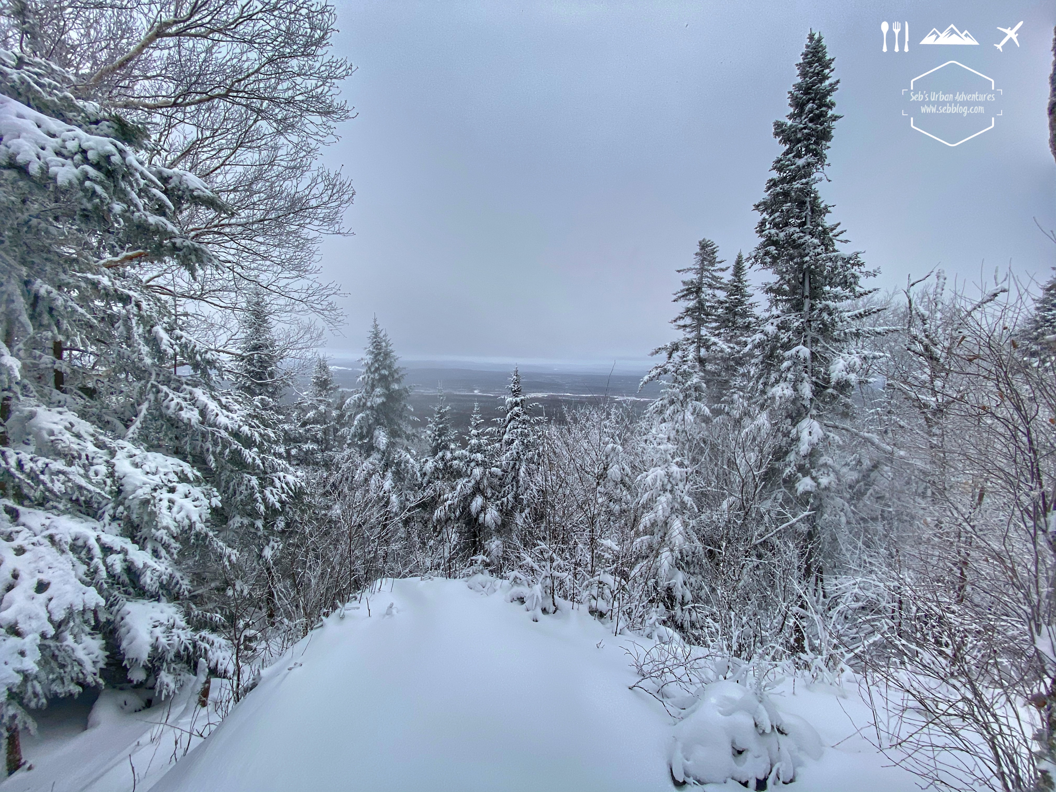 Le parc national du Mont-Mégantic est l’un de mes endroits préférés pour la randonnée et l’hiver, tout comme l’été, offre des vues magnifiques. Au cours de cette randonnée, nous avons rencontré trois points de vue, deux avec de superbes vues et le dernier dans le brouillard, ce qui nous a quand même permis d’avoir une belle vue.