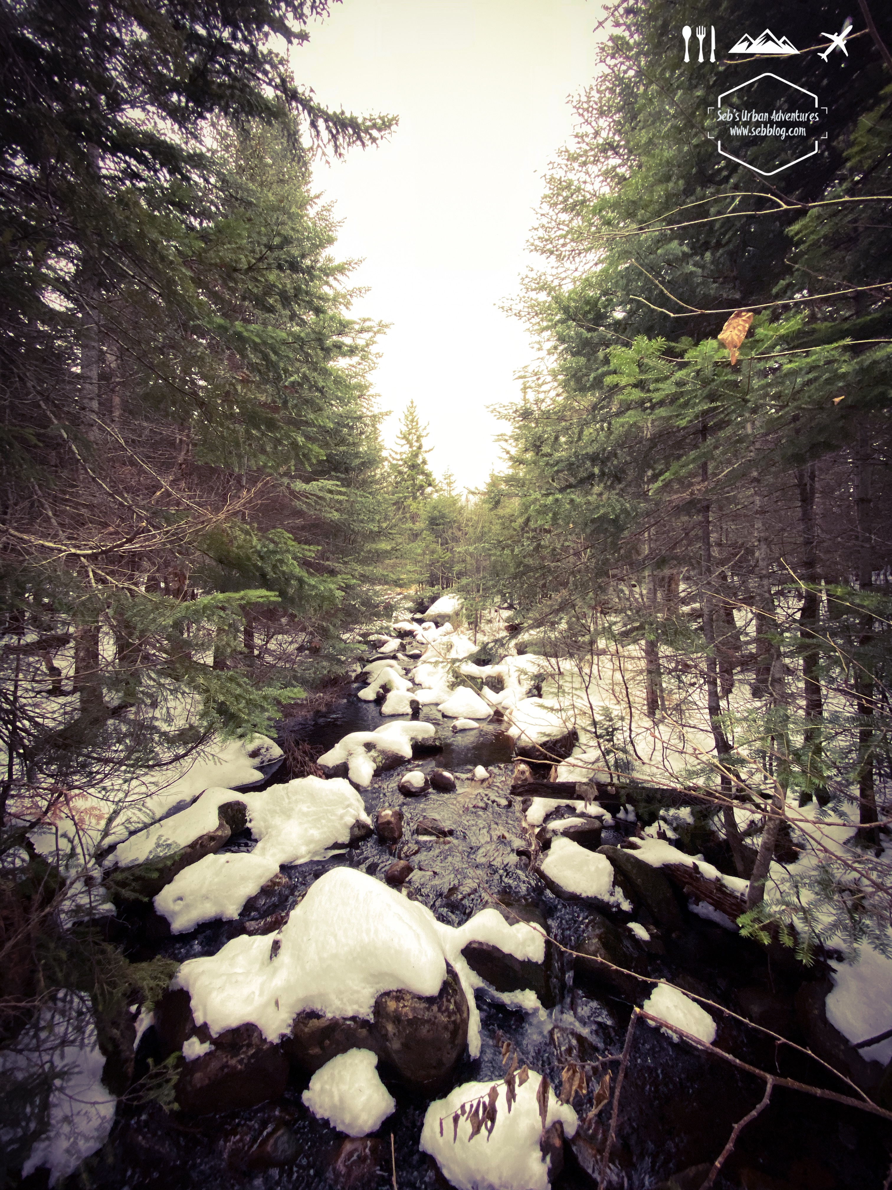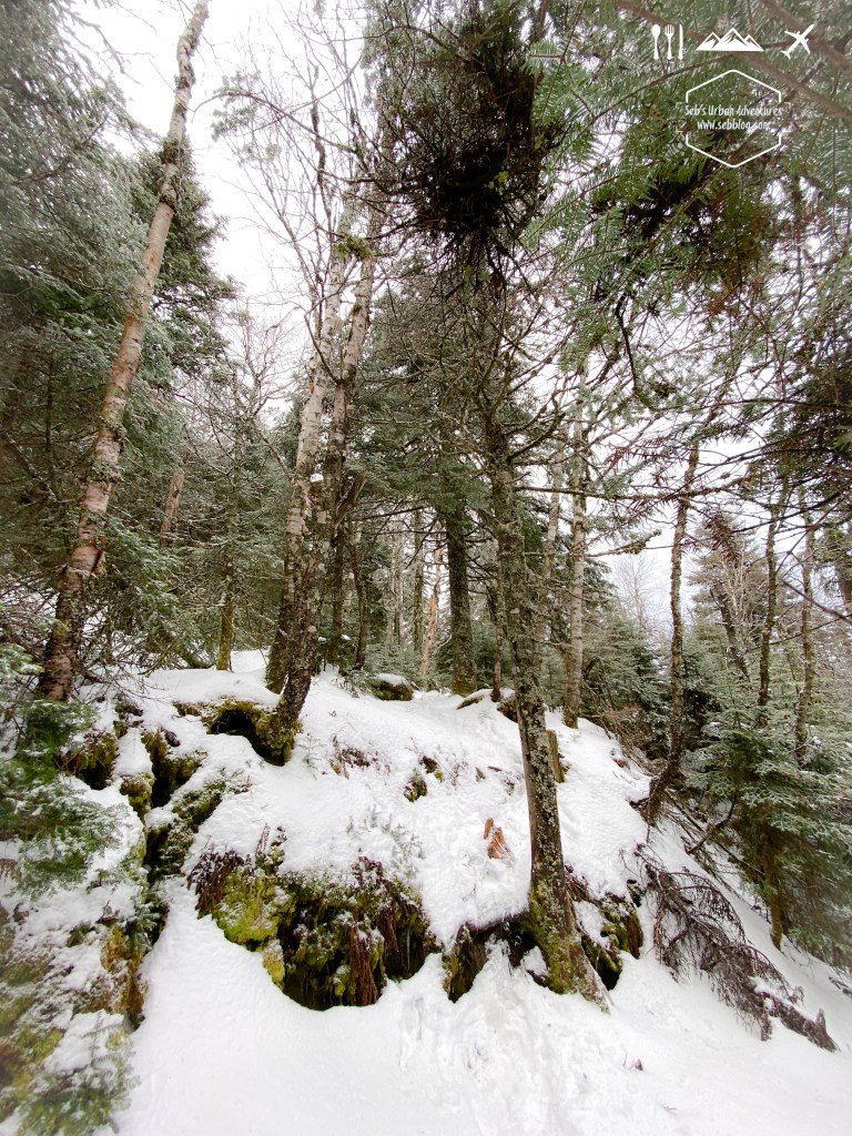 Nous avons quitté le sommet pour continuer la boucle et nous avons été les premiers à utiliser ce chemin car nous étions dans de la neige vierge sur 2 bons kilomètres. Même si le sentier n’a pas été utilisé avant nous, comme mentionné, il est bien identifié et nous ne sommes pas sortis du sentier à aucun moment. Si vous ne voulez pas faire la boucle complète, vous pouvez aussi revenir en arrière et utiliser le chemin de La Traverse pour rejoindre le Sentier Inter Centre sur la dernière portion de la boucle ou revenir en arrière et faire un aller-retour.