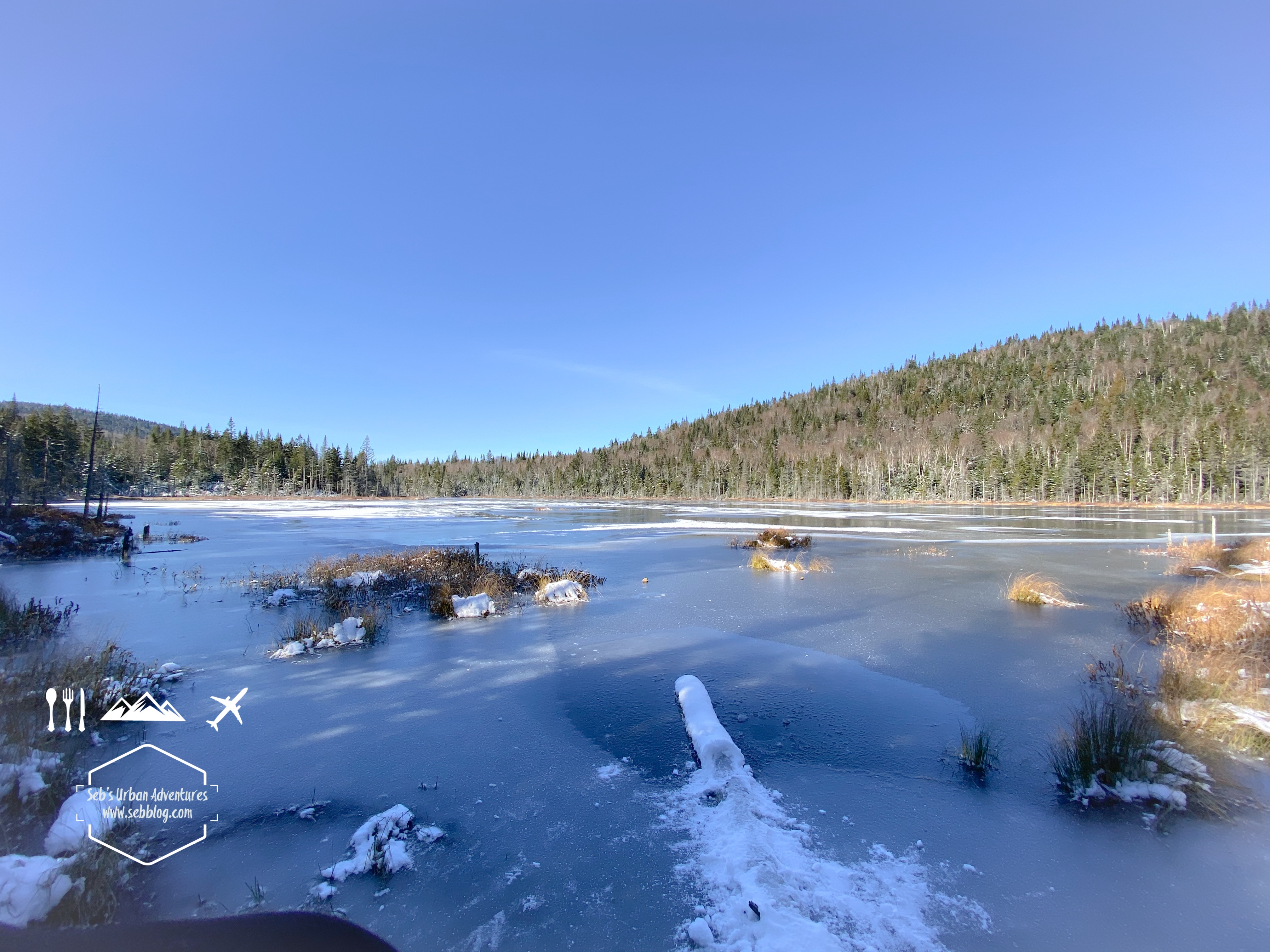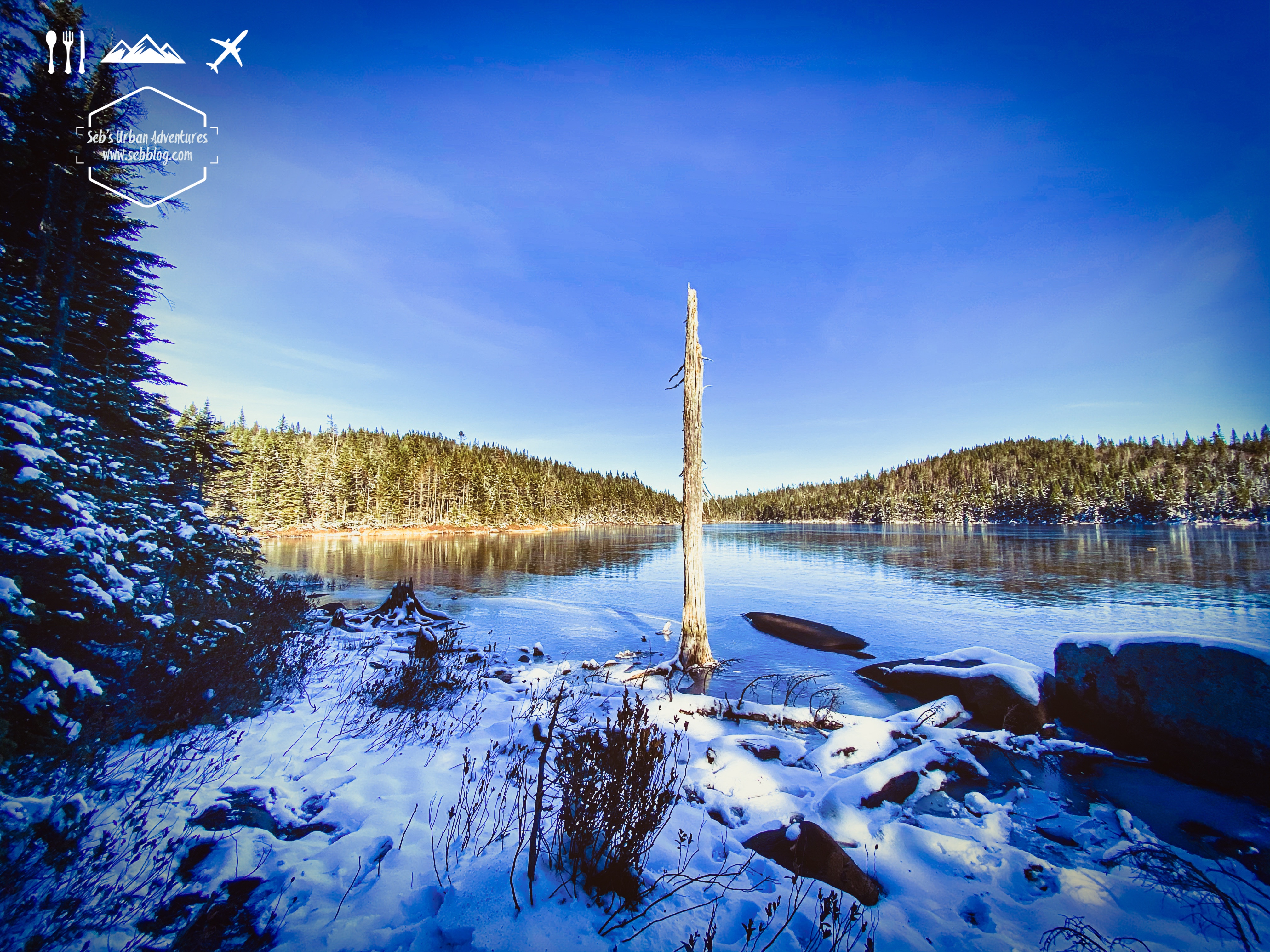 Il y a plusieurs bifurcations sur le sentier, mais il y a des cartes à chaque intersection, ce qui permet de suivre facilement et de rester sur la piste. Il y a plusieurs points de vue intéressants, à commencer par celui du lac Archambault. Le prochain sera au lac Lezard, juste avant d’arriver au site de l’écrasement du Liberator III de l’ARC. L’avion s’est écrasé en 1943 et les 24 militaires à bord ont péri dans l’accident. Il y a un mémorial juste après le site du crash pour les victimes.