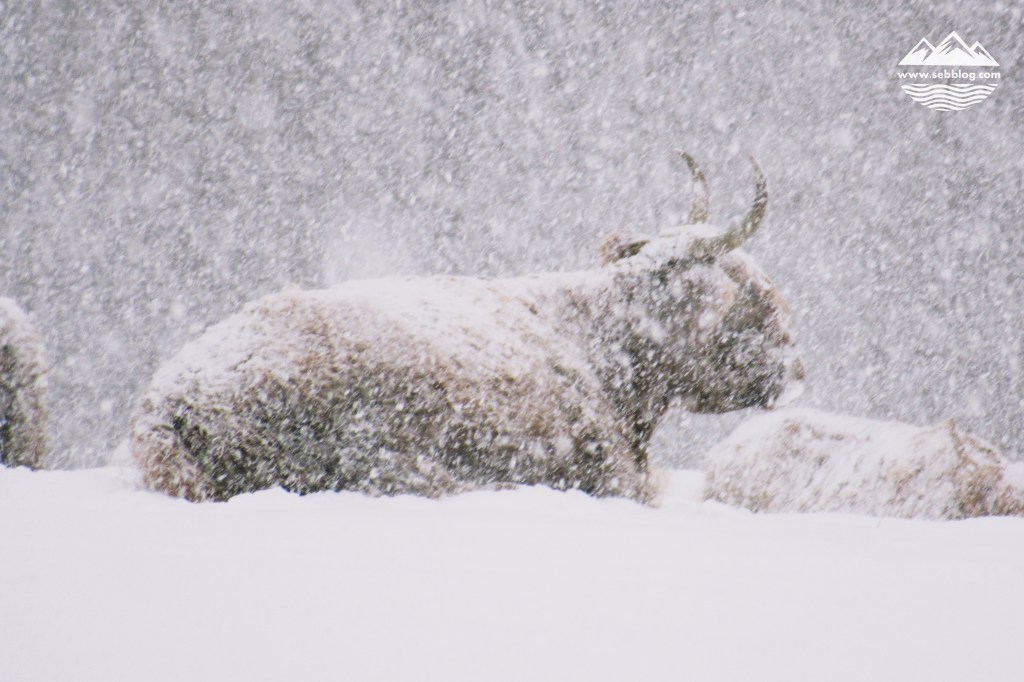Une autre caractéristique intéressante de cet endroit est son enclos avec du betails des Highlands. Comme vous pouvez le voir sur mes photos ci-dessous, en ce jour de neige, ils m’ont donné de superbes clichés.