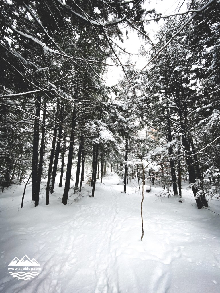 Il s’agit d’une randonnée en boucle de 5,1 km située près d’Abercorn dans la station de montagne Au Diable Vert avec 172 mètres de dénivelé. Le coût est de 7,50$ et le sentier commence 600m après le centre d’accueil.