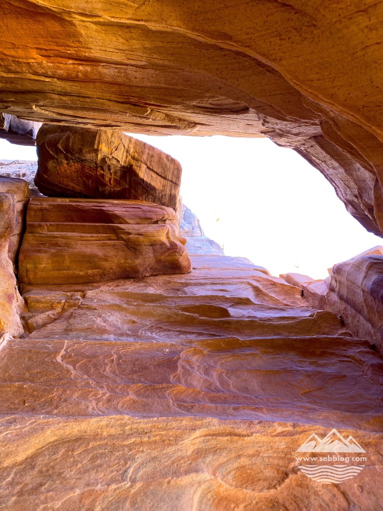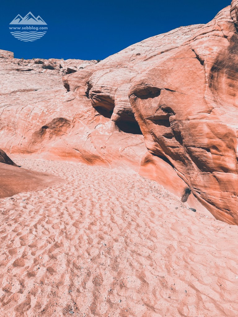 C’est un sentier modéré, mais vous allez marcher sur des pierres et du sable. Le sentier a quelques pentes raides avec des rochers dans le chemin, ce qui le rendra un peu plus difficile. Dans le sens des aiguilles d’une montre, le sentier vous mènera d’abord à Fire Wave qui est magnifique avec son motif de lignes rouges et blanches. Vous traverserez ensuite quelques canyons dorés qui vous mèneront à la route. En traversant la route, vous continuerez et en gardant la gauche, vous arriverez dans des canyons rouges plus étroits mais toujours praticables, qui sont tout simplement superbes et où vous pouvez faire des vidéos vraiment cool, en voici une que j’ai faite au canyon. Si vous avez de la chance, vous verrez peut-être des moutons à longues cornes, comme ce fut le cas lorsque j’ai atteint White Domes.