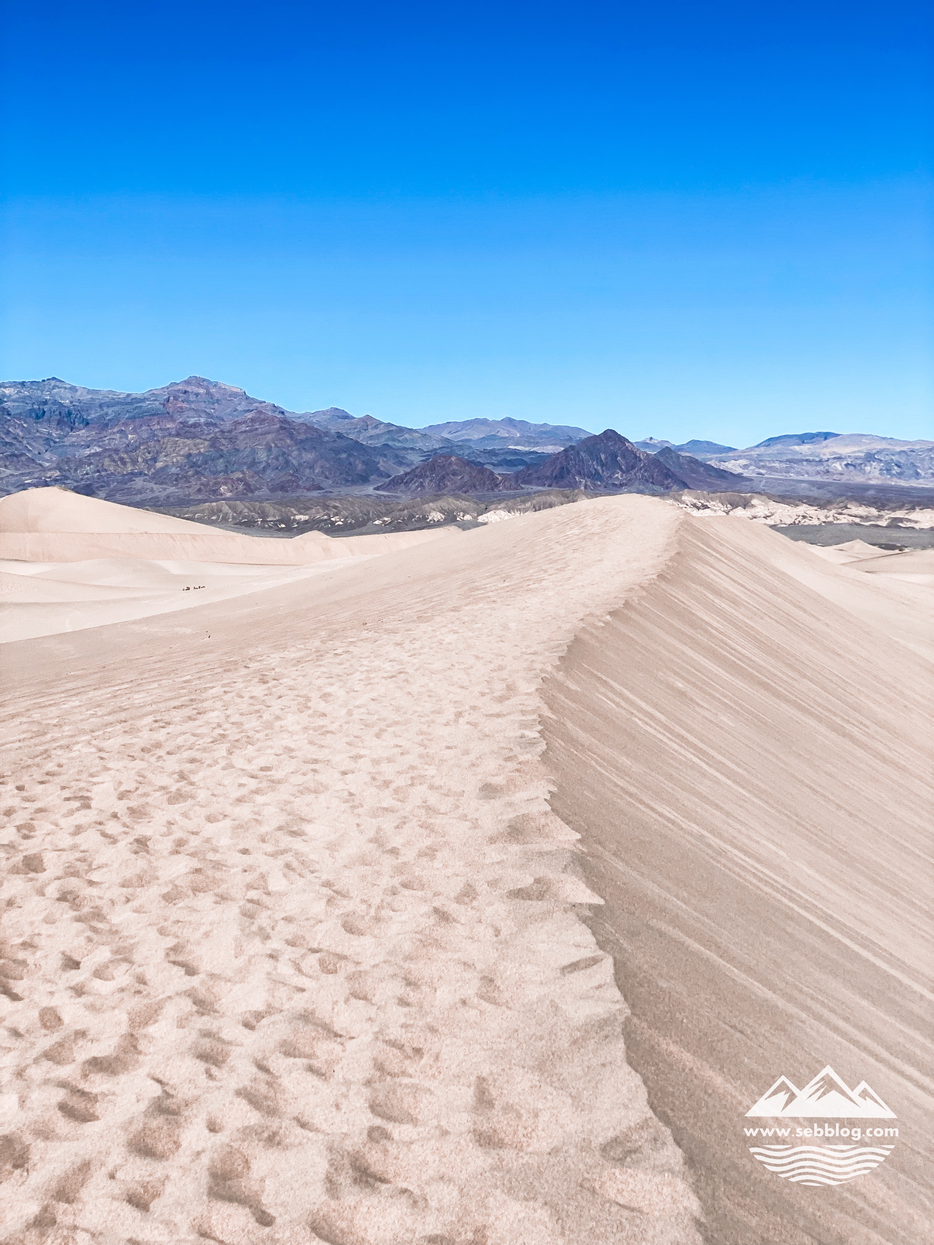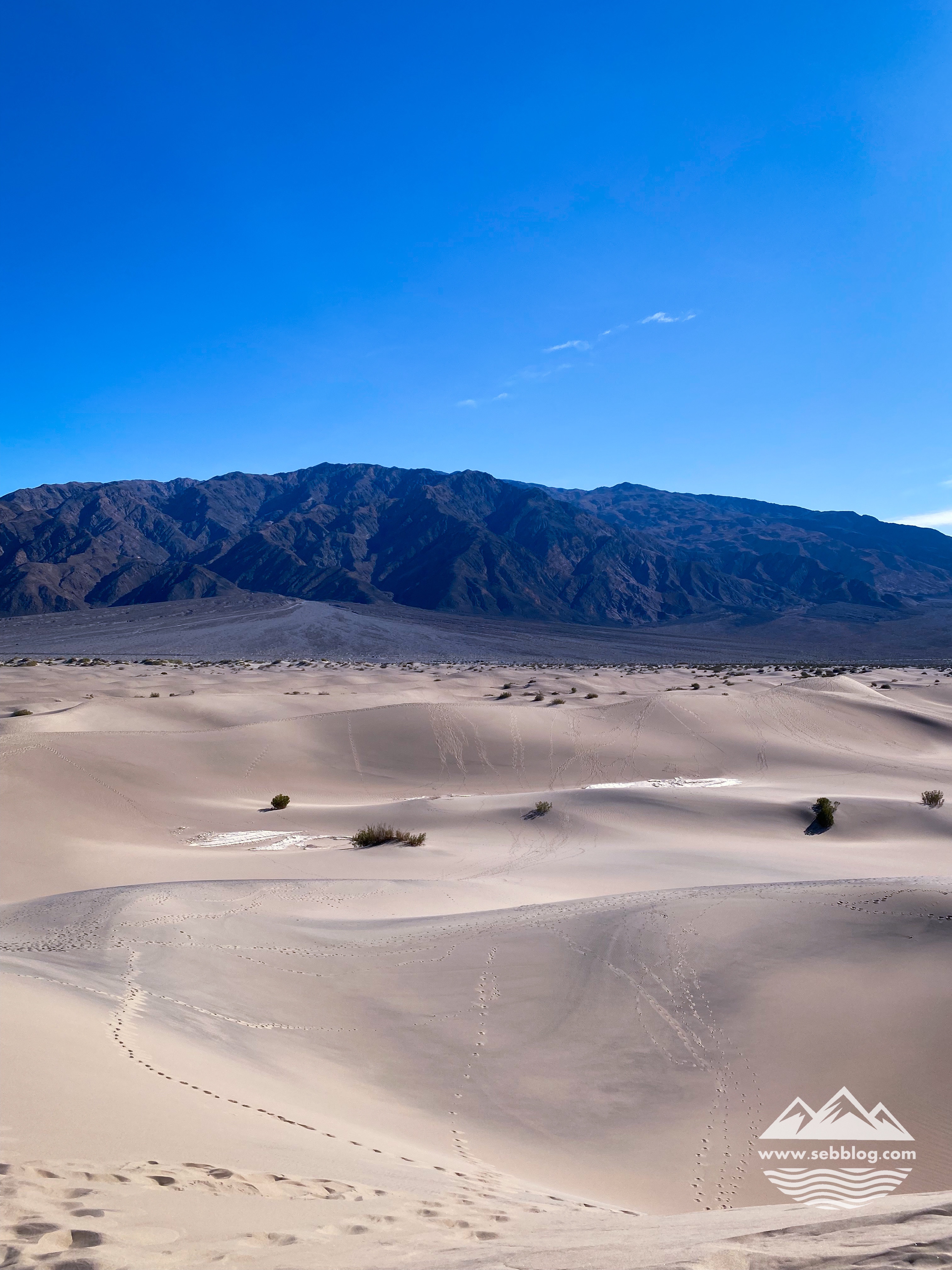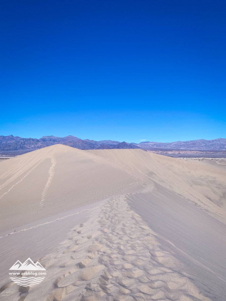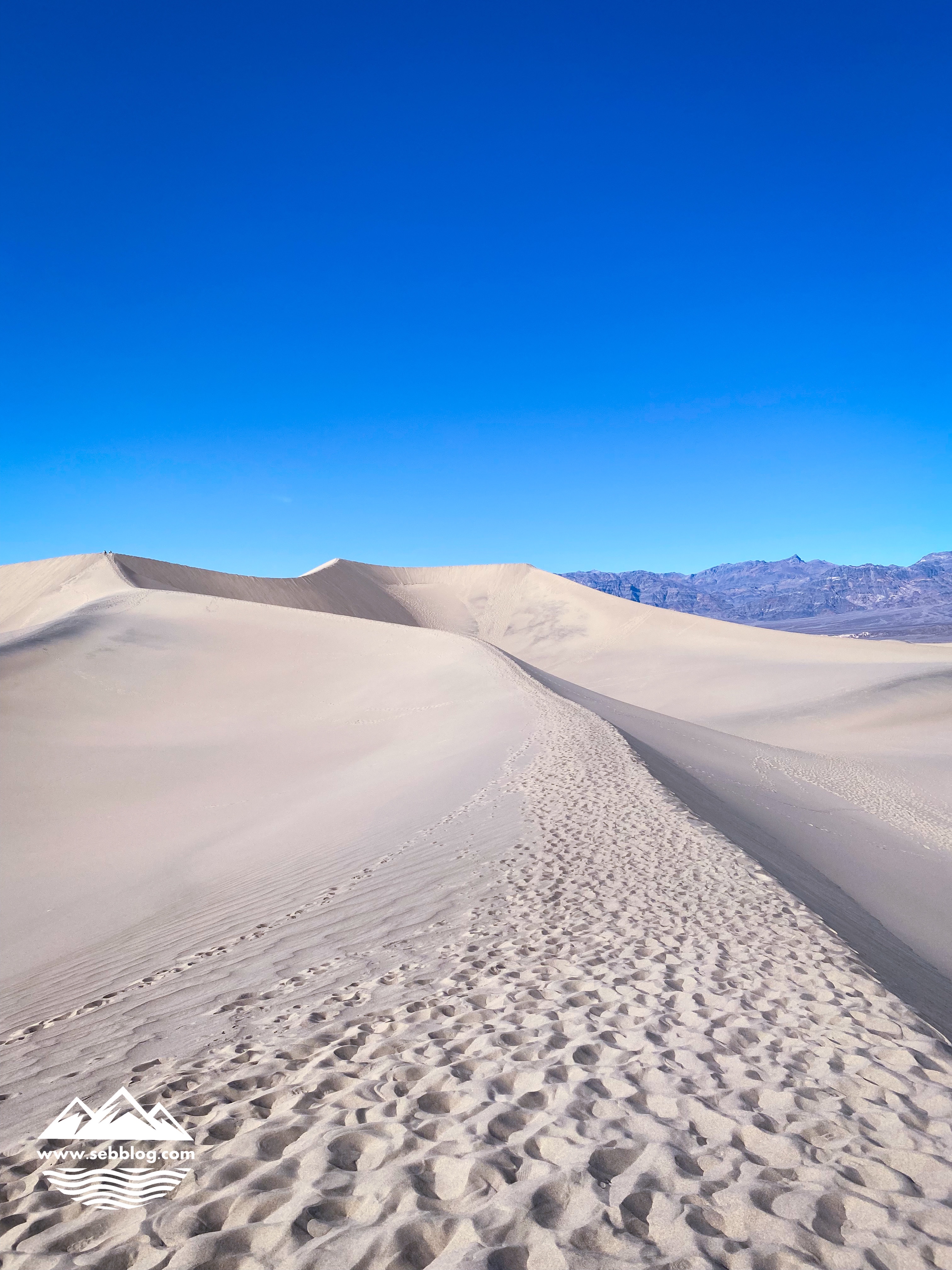 C’est un sentier modéré de 3,2 km avec seulement 56 m de dénivelé. Si vous n’êtes pas habitué aux randonnées dans le sable ou la neige, vous risquez de trouver cela plus difficile car chaque pas s’enfonce dans le sable. Mais même s’il est court, les vues sont spectaculaires. Je dois admettre qu’avant de faire des recherches sur la randonnée dans la Death Valley, je ne m’attendais pas à avoir de tels changements de paysages dans les différentes zones du parc.