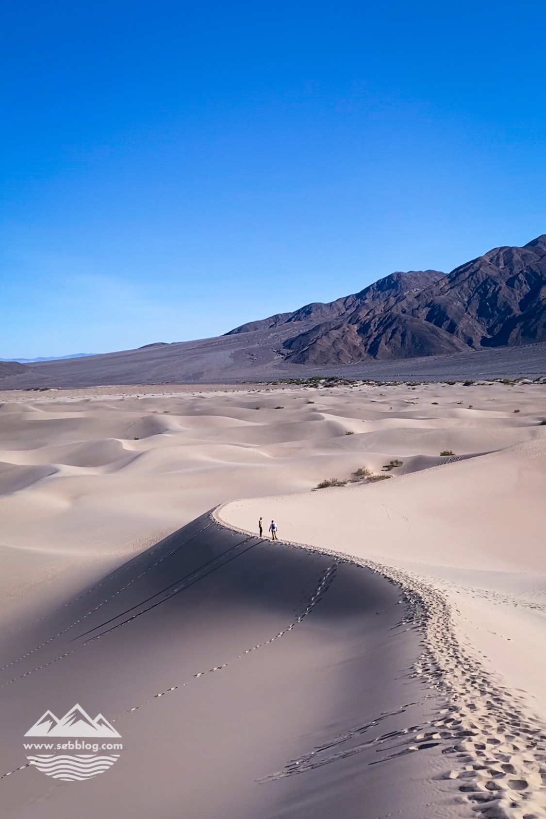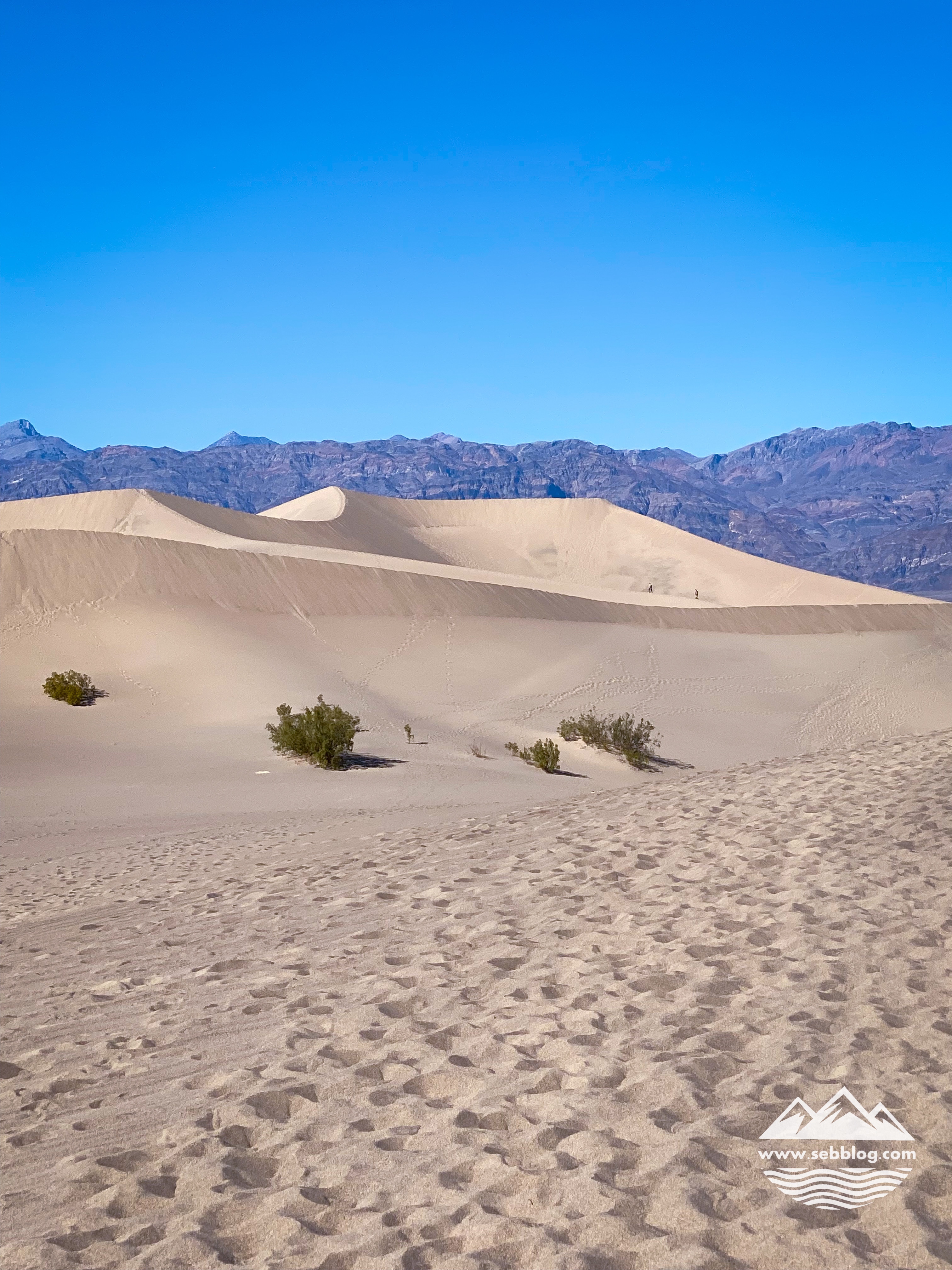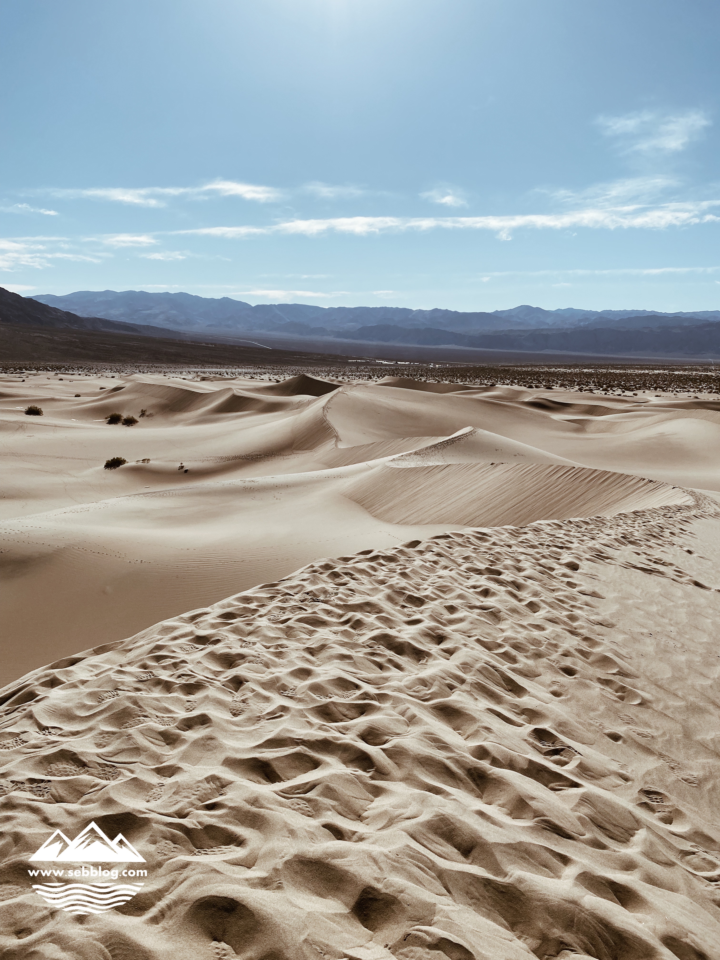 Il y avait pas mal de monde dans les zones des dunes mais très peu ont essayé d’atteindre la plus haute. J’ai rencontré 2 autres randonneurs au sommet, mais la plupart des gens se contentent de se promener pas très loin du parking. Le panneau indique qu’il faut environ 1h30 pour atteindre la plus haute dune, mais j’ai pu le faire en 45 minutes. J’avais vraiment l’impression d’être dans un autre monde en étant au milieu des dunes. Pas étonnant que certains films d’Hollywood aient utilisé les dunes dans le passé pour des tournages.