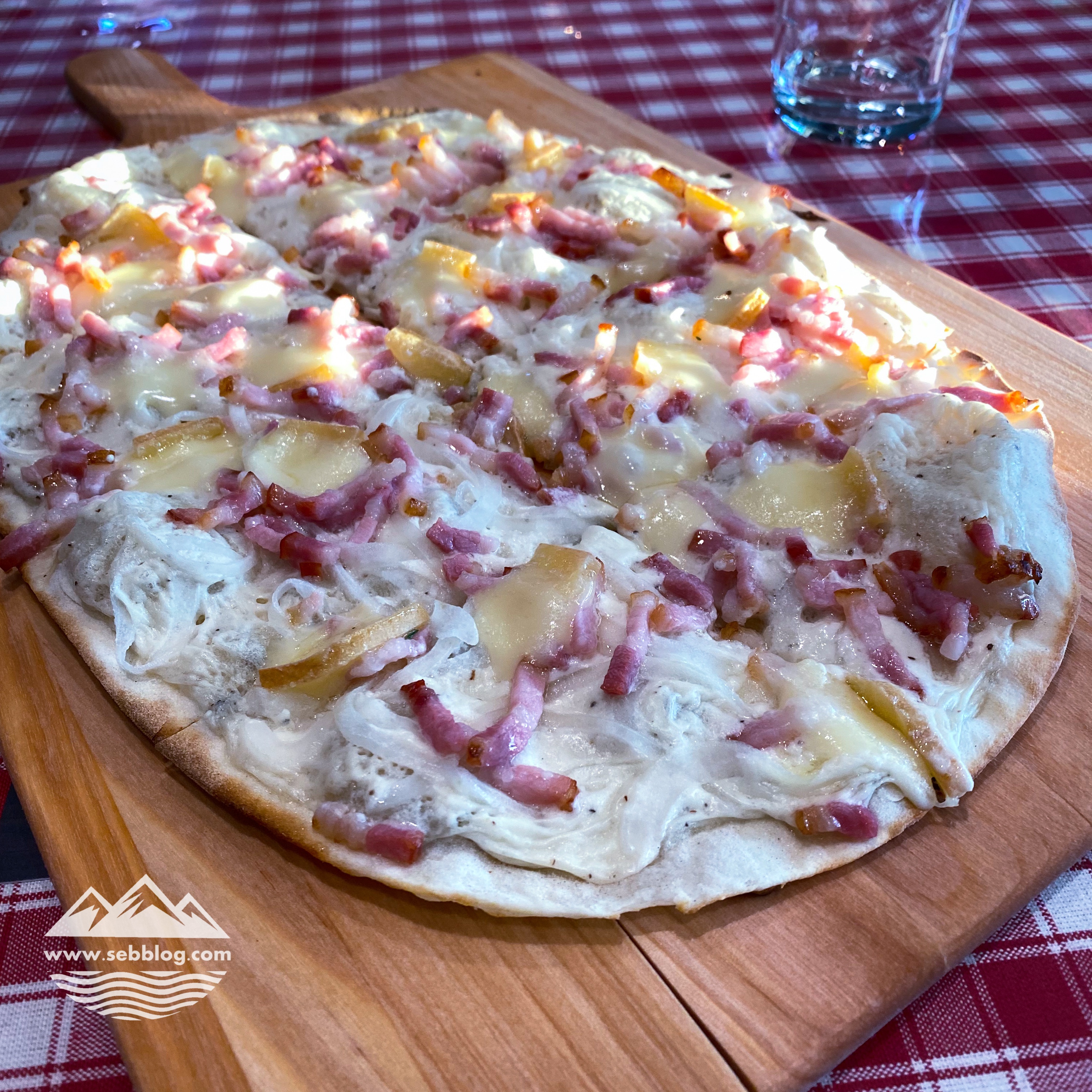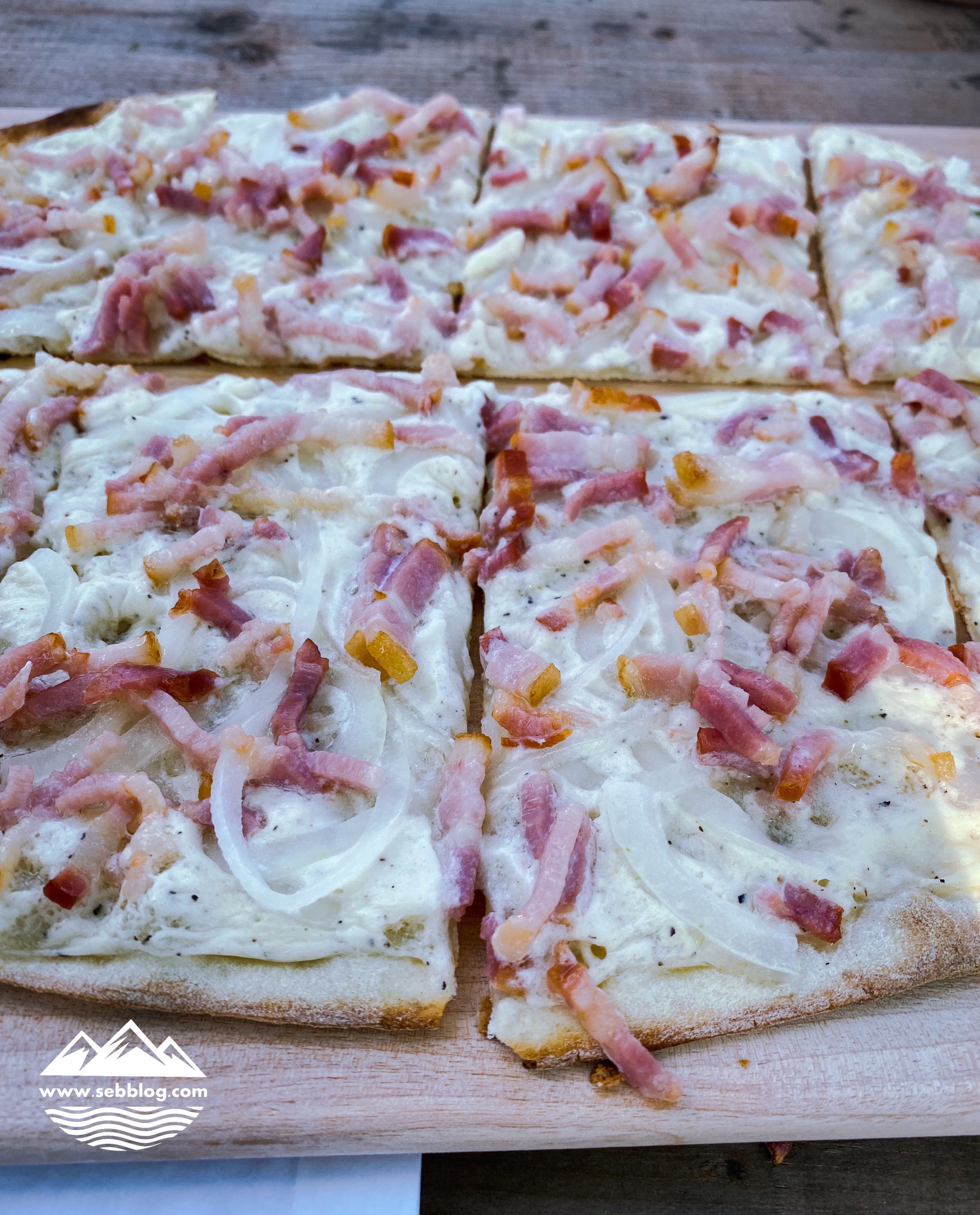 En revenant d’une randonnée dans les Cantons de l’Est, j’ai découvert ce superbe bistrot alsacien L’ Ami Fritz. Ils proposent une grande variété de flammekueches, la flammekueche ou tarte flambée est une spécialité alsacienne. Elles sont faites à partir d’une fine pâte à pain et la traditionnelle est recouverte de fromage, de crème fraîche, d’oignons émincés et de lardons.