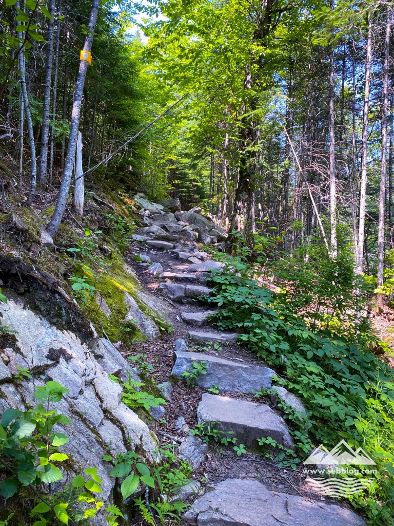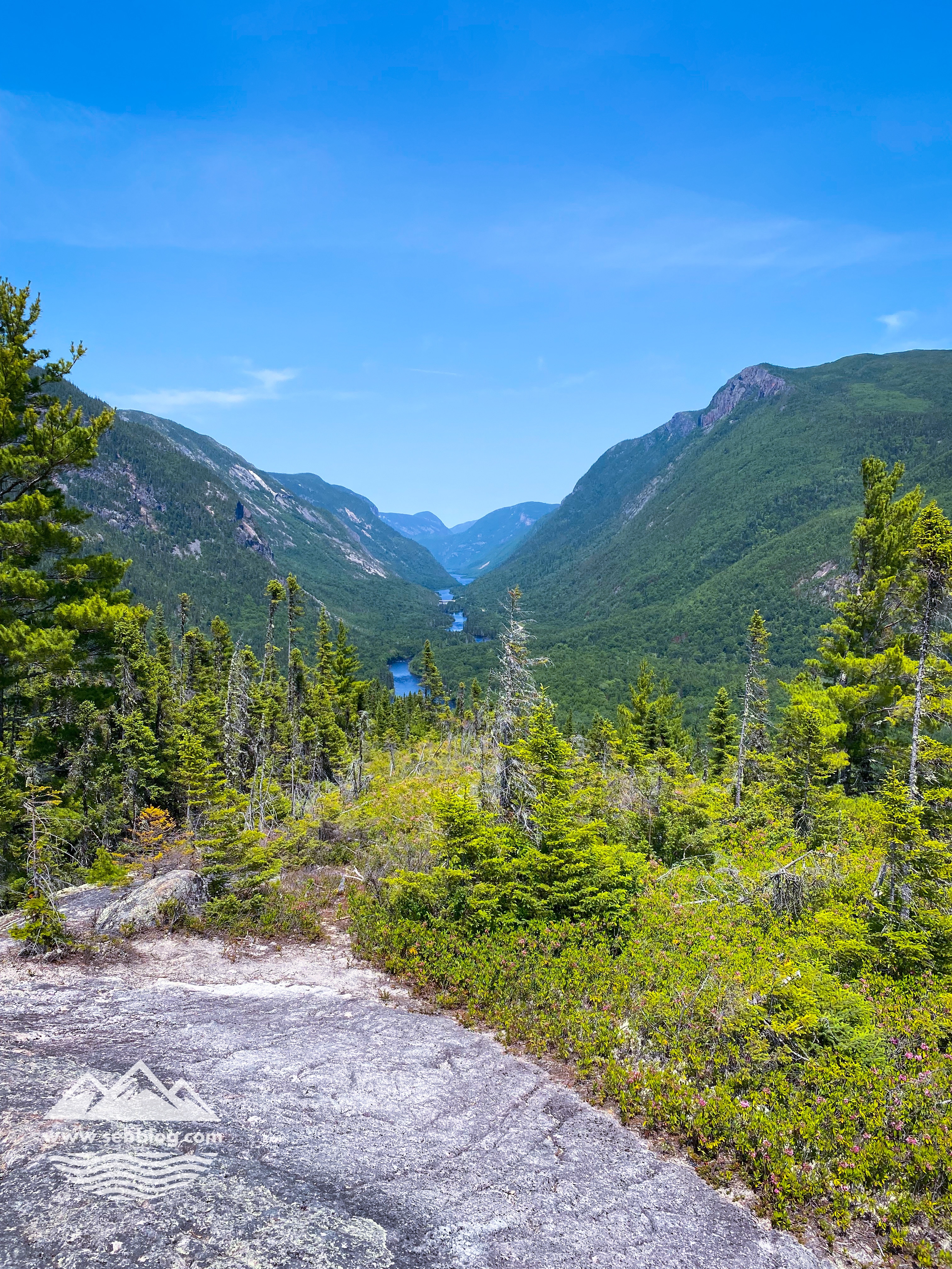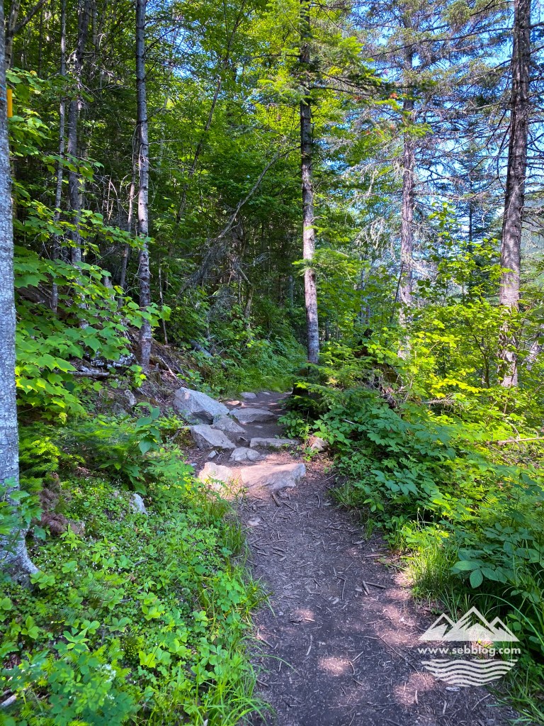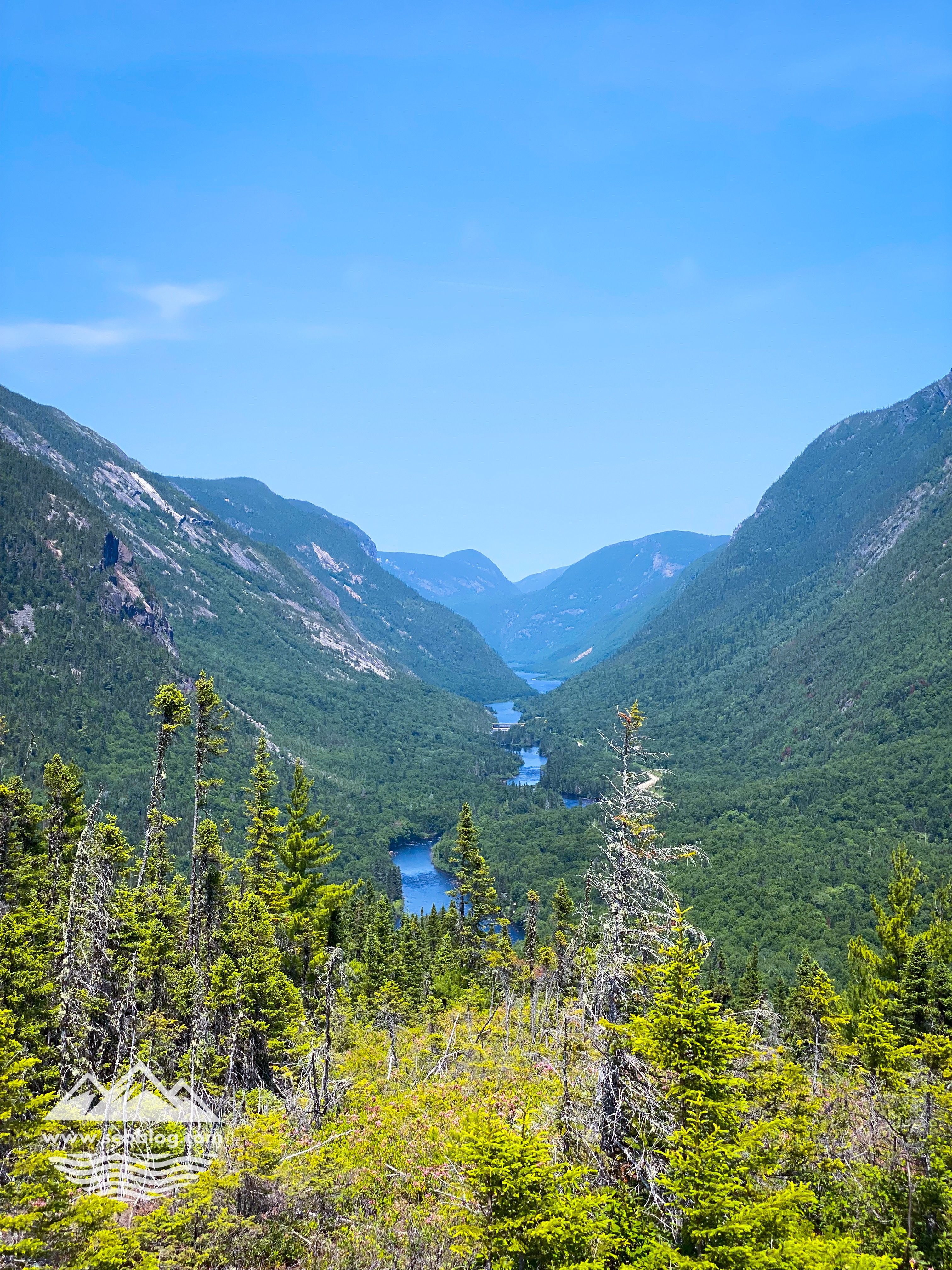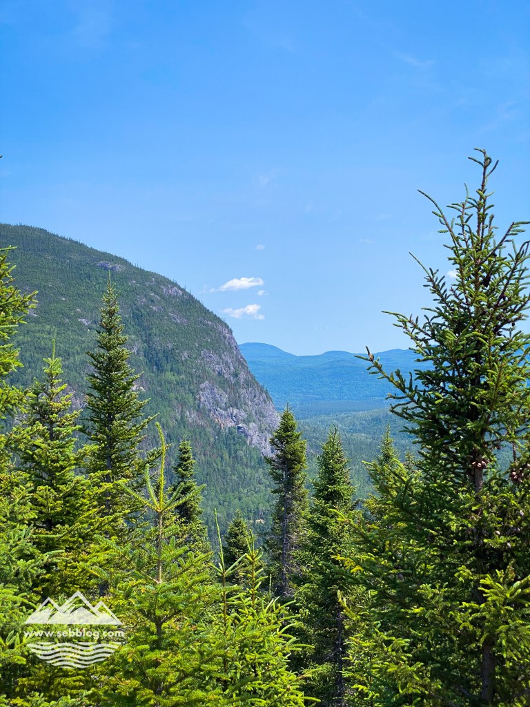 Pendant les 3 premiers kilomètres, je me demandais s’il y avait des vues sur ce sentier, puis j’ai commencé à avoir des points de vue à partir du km 5. Vous obtenez un différent point de vue sur la vallée de la rivière Malbaie qui ne rivalise pas avec l’Acropole des Draveurs mais qui peut être une bonne alternative si vous n’êtes pas en condition pour le faire.